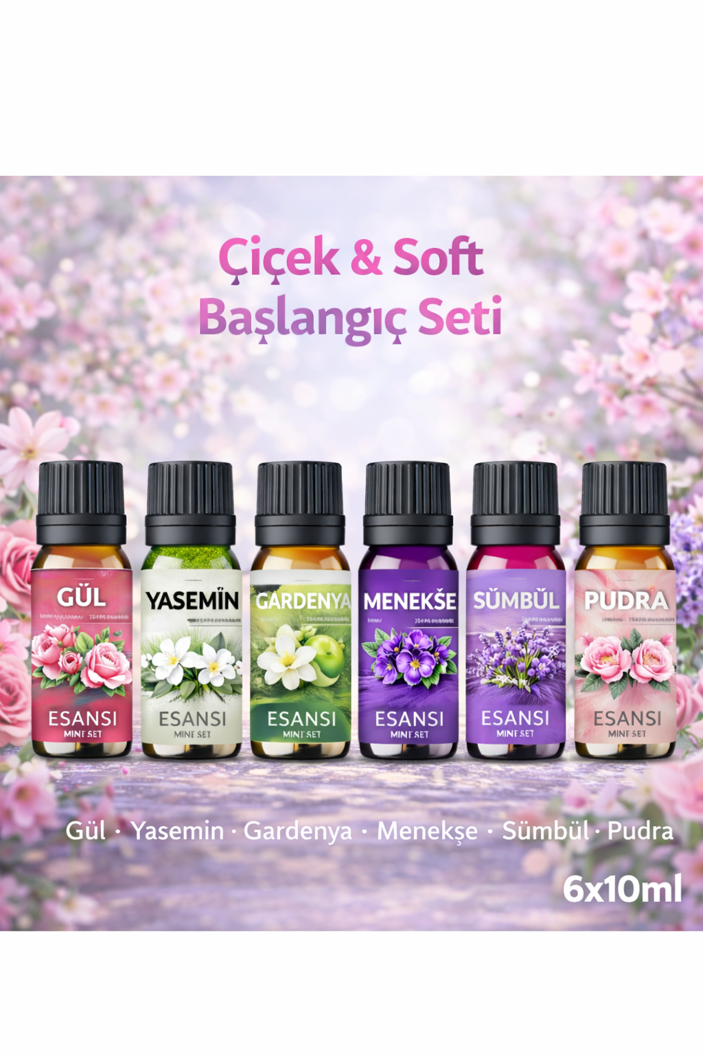 Çiçek & Soft KOku/Esan Seti - Saf Esas - Oda Ve Ortam Kokusu - Aromatik Esans 6x10ml