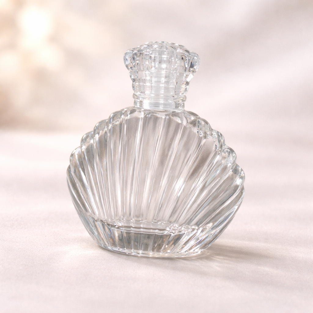 Deniz Kabuğu Tasarım Cam Parfüm/Kolonya Şişesi – Kristal Kapaklı