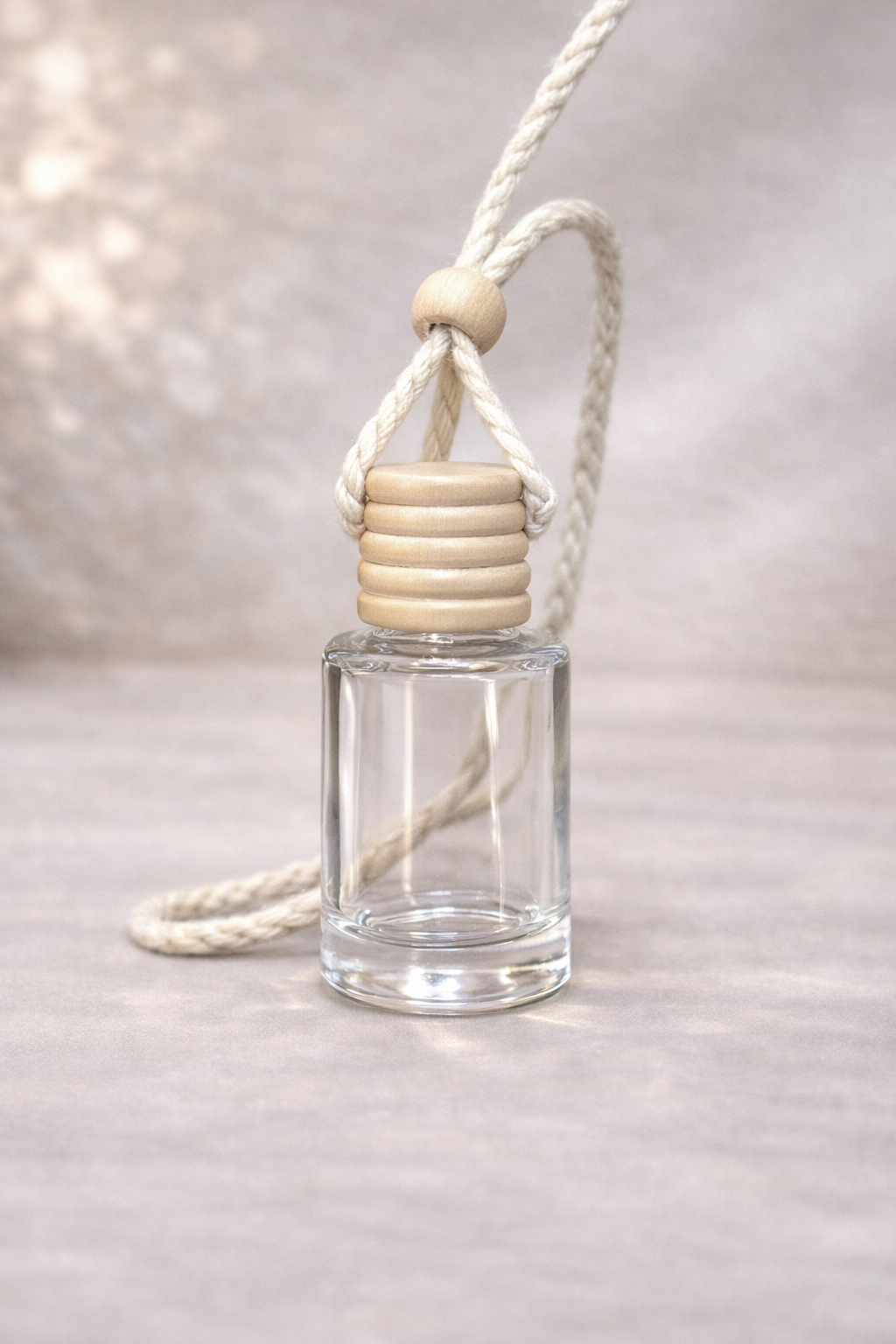 Yuvarlak Cam Woody Oto Kokusu Şişesi – Ahşap Kapaklı
